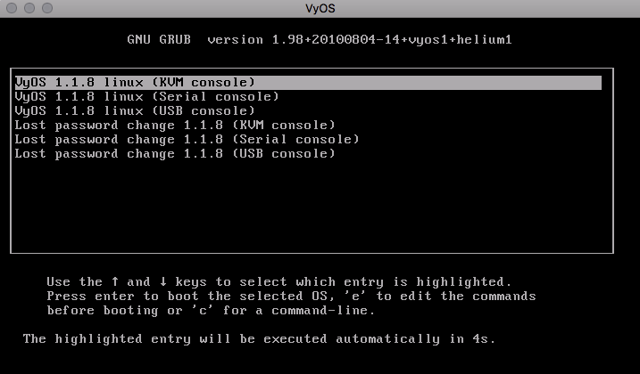 Сброс программного маршрутизатора VyOS к заводским настройкам (Factory Default) через загрузчик GRUB